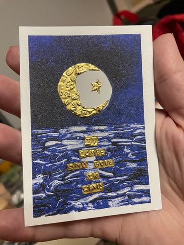 Original it comes and goes in waves Risograph and tin embossing 10cm x 8cm